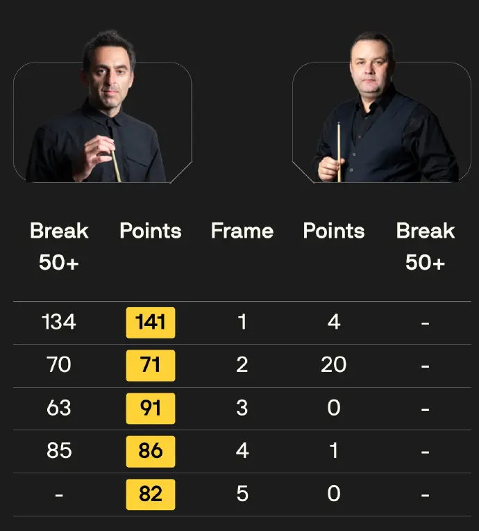 比赛第一局,奥沙利文一上来就展示出邃密垂危手感,他轰出单杆107分,107-0零封博伊科,1-0进步。第二局,博伊科的弘扬依旧欠安,奥沙利文则通过几次上手,81-27再胜一局,2-0进步。