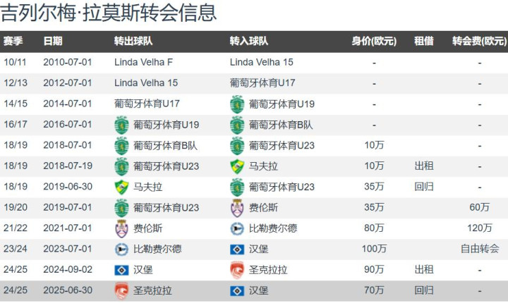 吉列尔梅-拉莫斯出自葡萄牙体育青训,但并莫得踢上一线队,曾效用过马夫拉、费伦斯、比勒菲尔德、圣克拉拉以及汉堡。吉列尔梅-拉莫斯汉堡生活各项赛事36场2球。