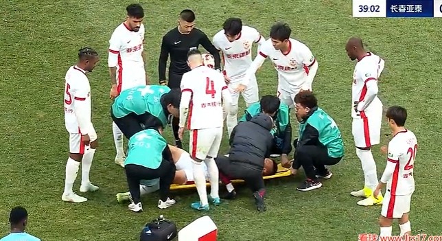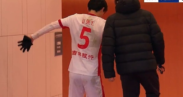 第38分钟,谭龙拼抢中受伤倒地被担架抬出场外,同期李申圆受伤坚执不住回更衣室。↓