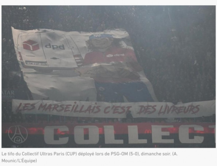 这一被删改但具有冒犯性的巨幅横幅影响恶劣。专营包裹运载与配送业务(附庸于法国邮政集团)的DPD公司本周一发布公告,示意缺憾其“公司绚丽被删改,并用于传达具有报复性且起义其所捍卫的价值不雅的信息”。这是在巴黎圣日耳曼队与马赛队比赛(5比0)次日作出的明确修起。比赛中,巴黎球迷展示了一幅巨幅横幅,上头写着“DPD”和“马赛东谈主即是送货员”。