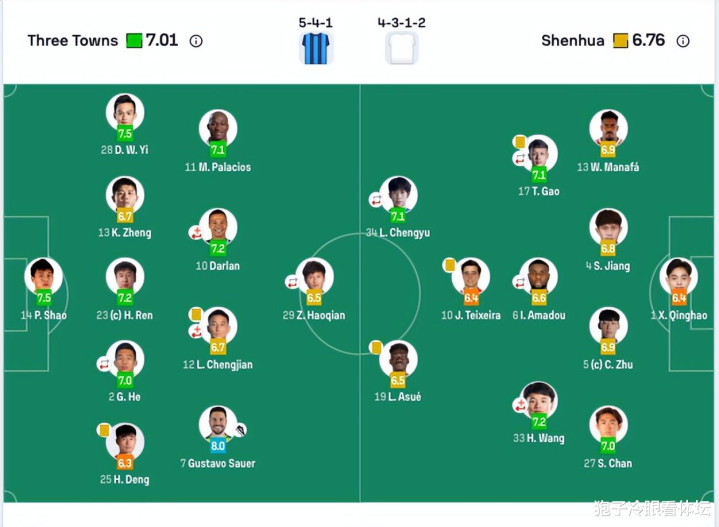 中场:17-高天意(56’7-徐皓阳)、6-阿马杜(F)(46’20-于汉超)、33-汪海健(78’16-杨泽翔)、10-特谢拉(F)